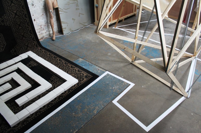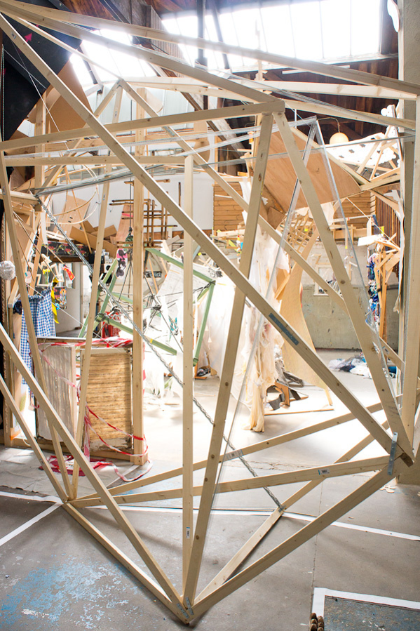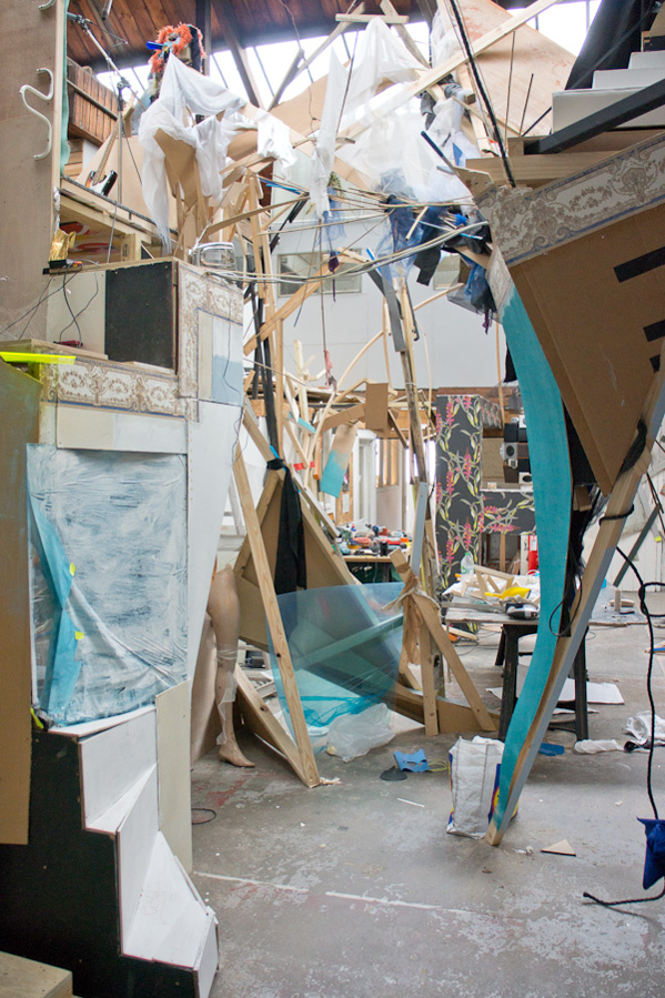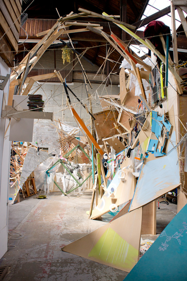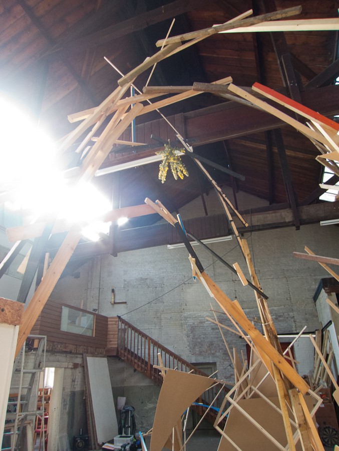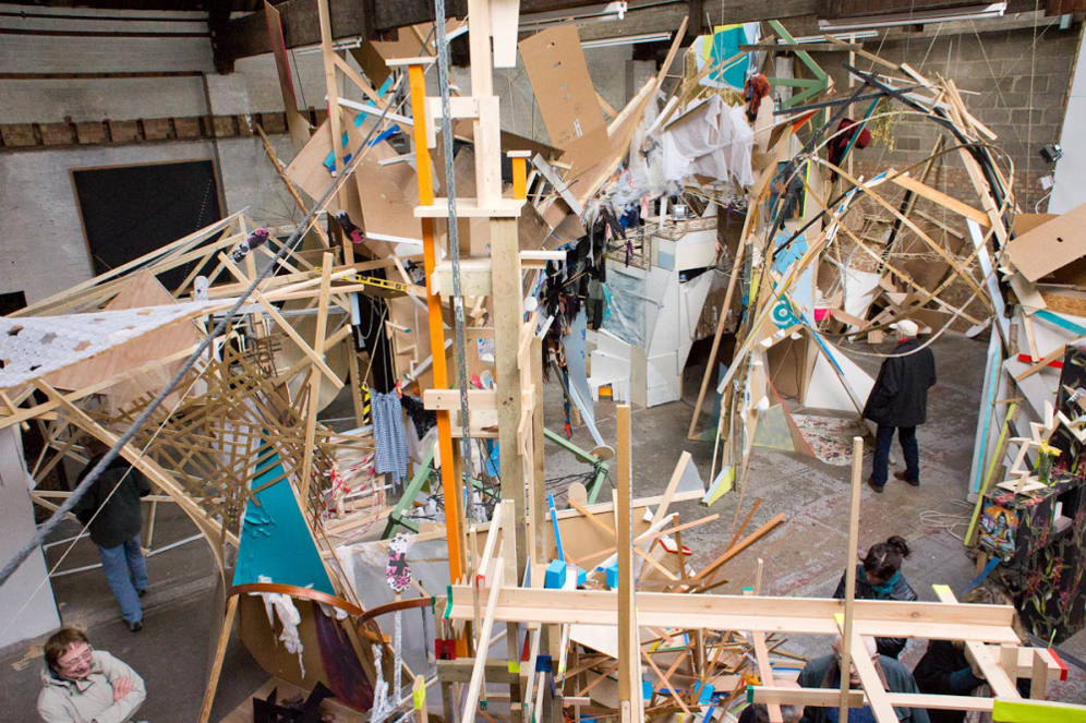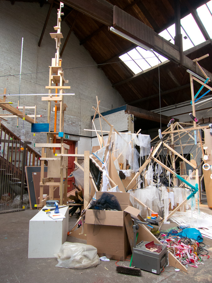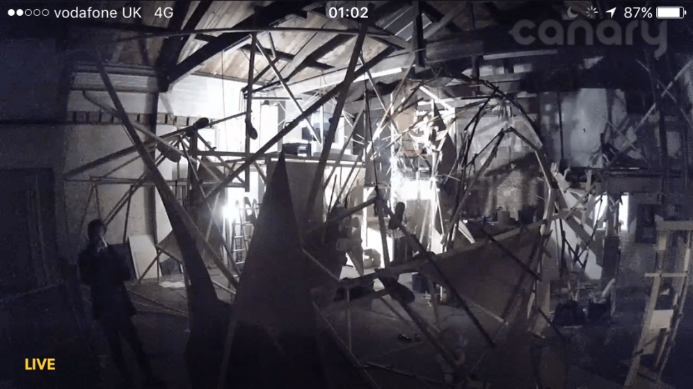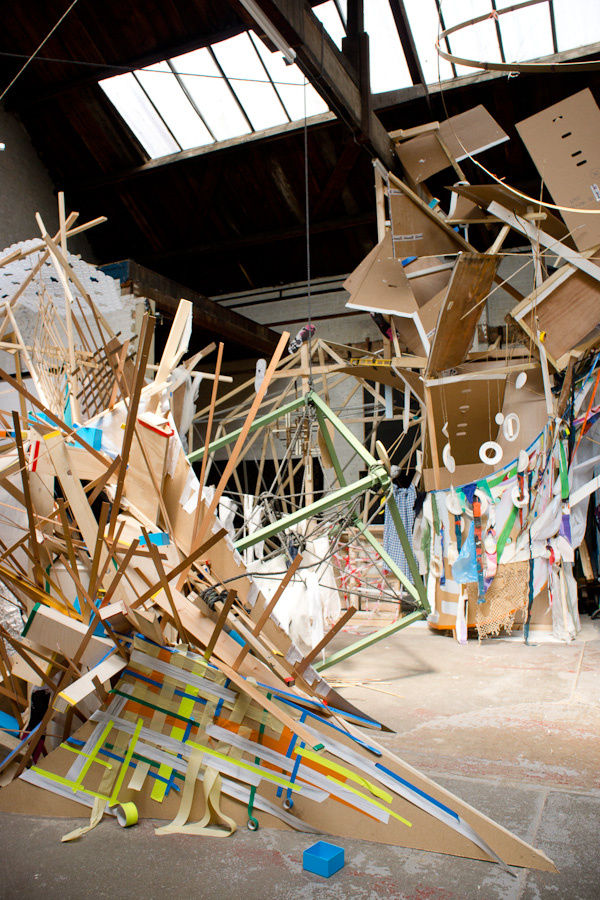 12 of the Warrior artists worked in the space at various times in a spirit of parallel play, where the work grew, changed, shifted, collapsed and was documented continuously via a cctv canary camera we set up and live streamed on youtube.