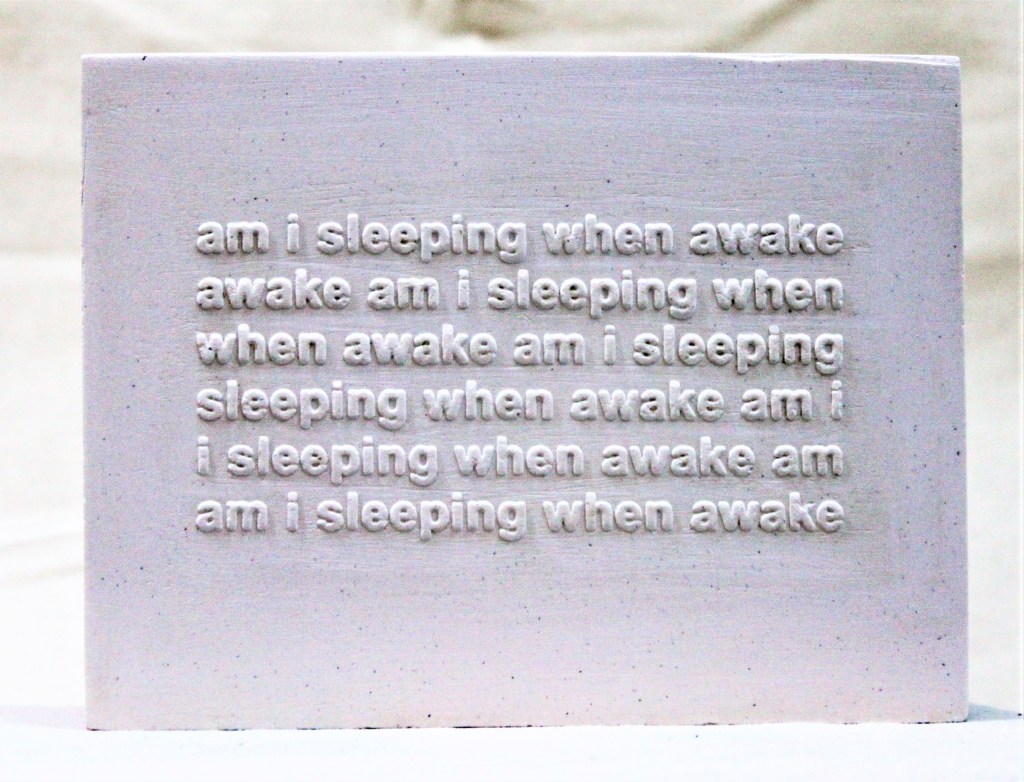 I changed from studying theology & philosophy to fine art because of a need to see, feel and make what I was thinking. The photo-etched texts explore an interest in the edges of visual thought.