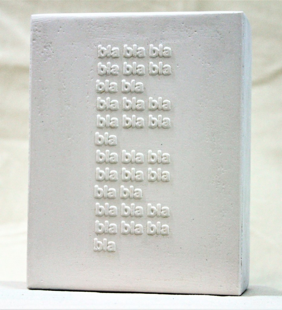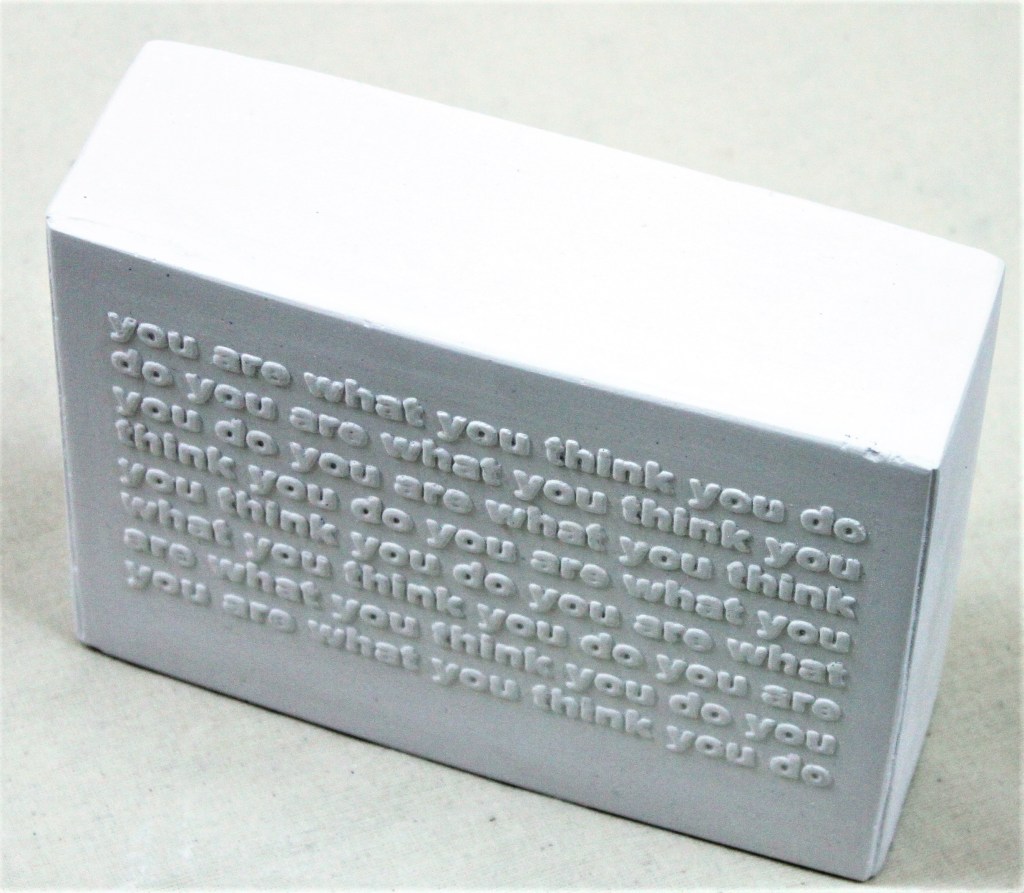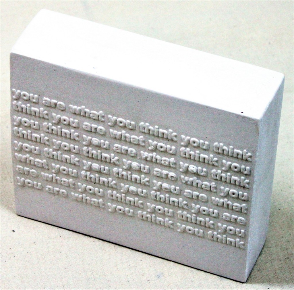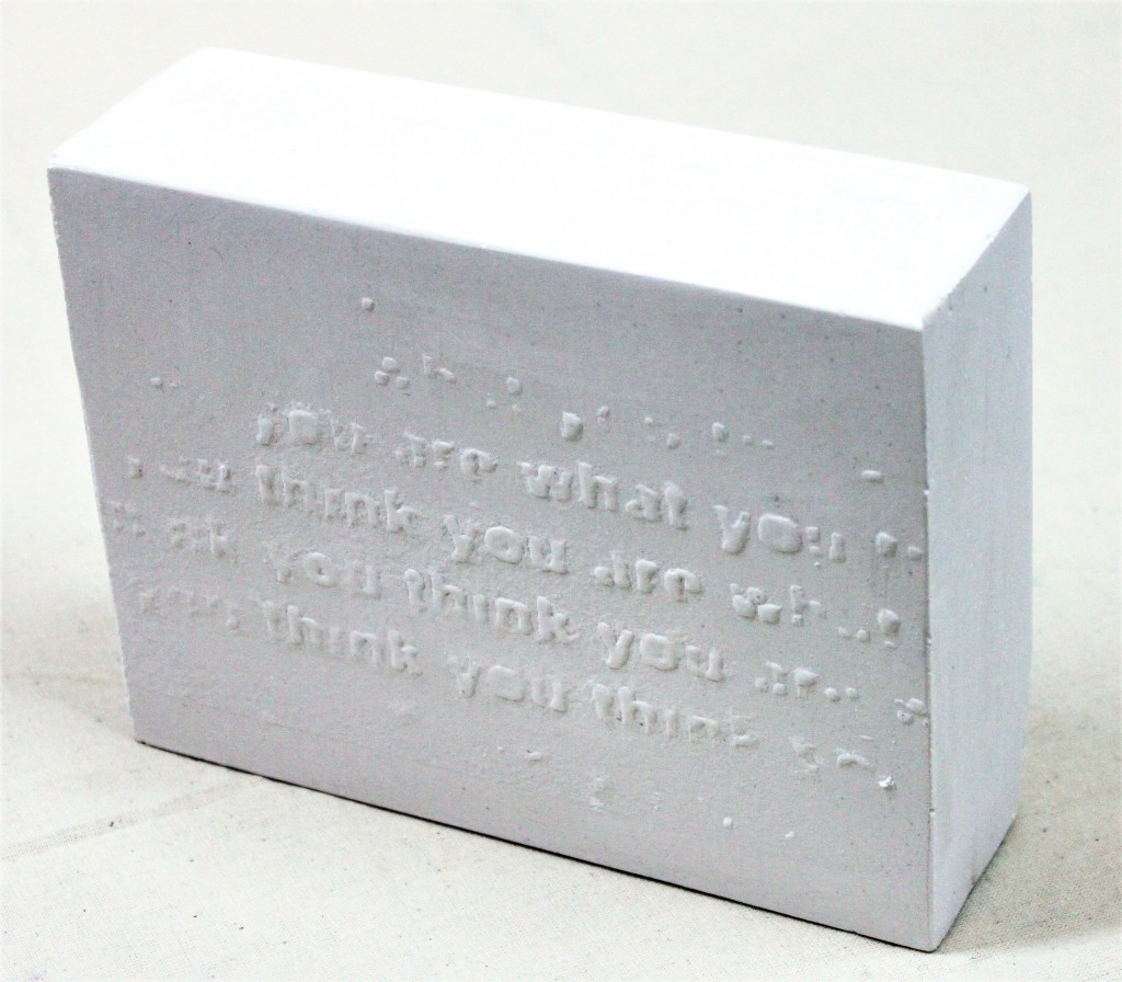 ‘Bricks with Blind suggestions’ were cast in plaster from a series of plain embossed photo-etchings that play with language –