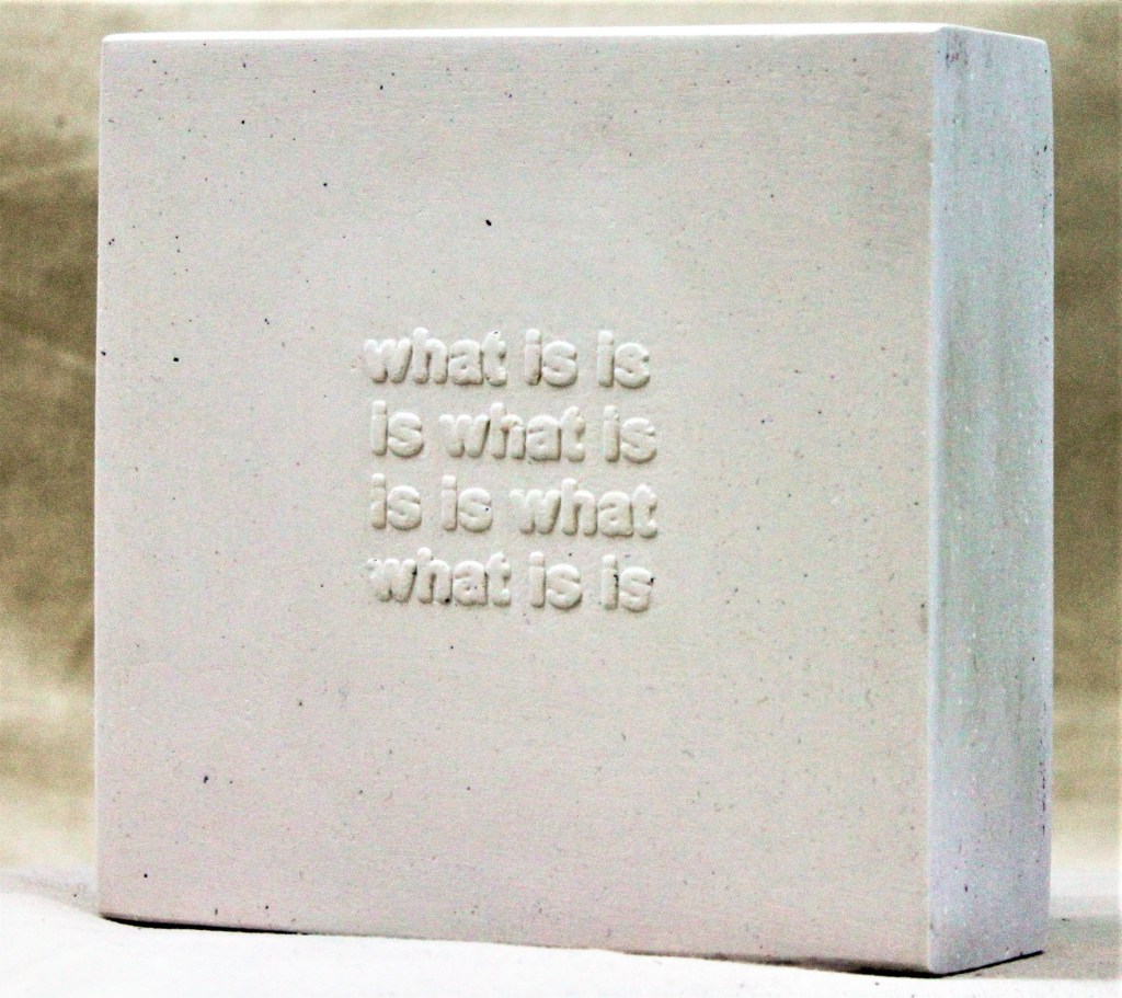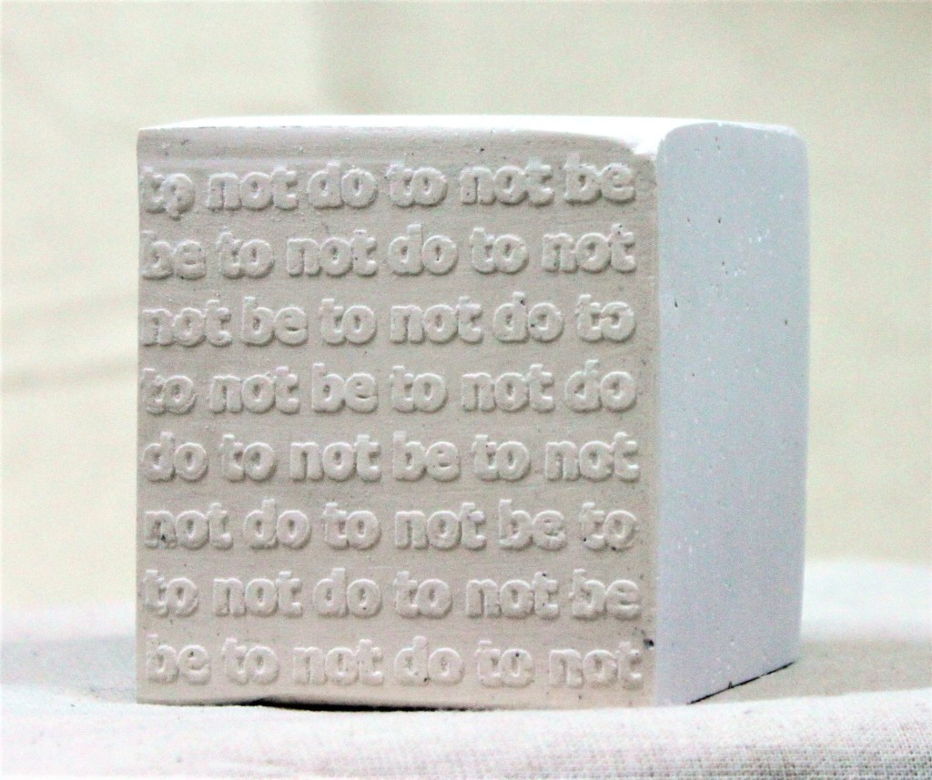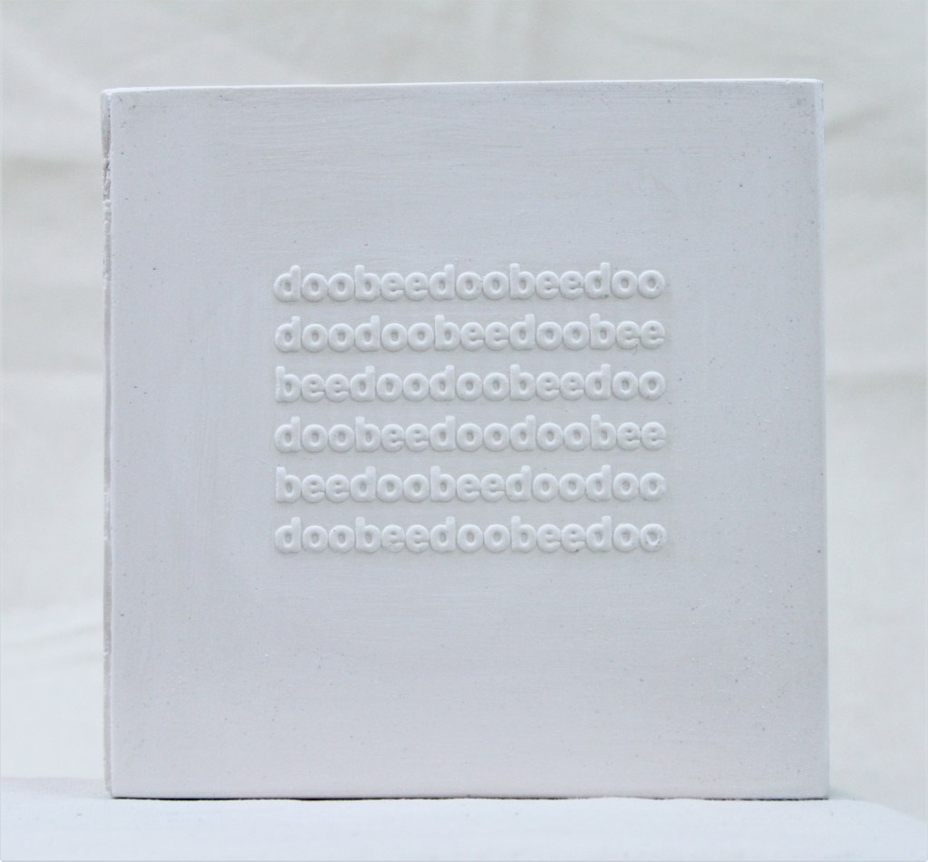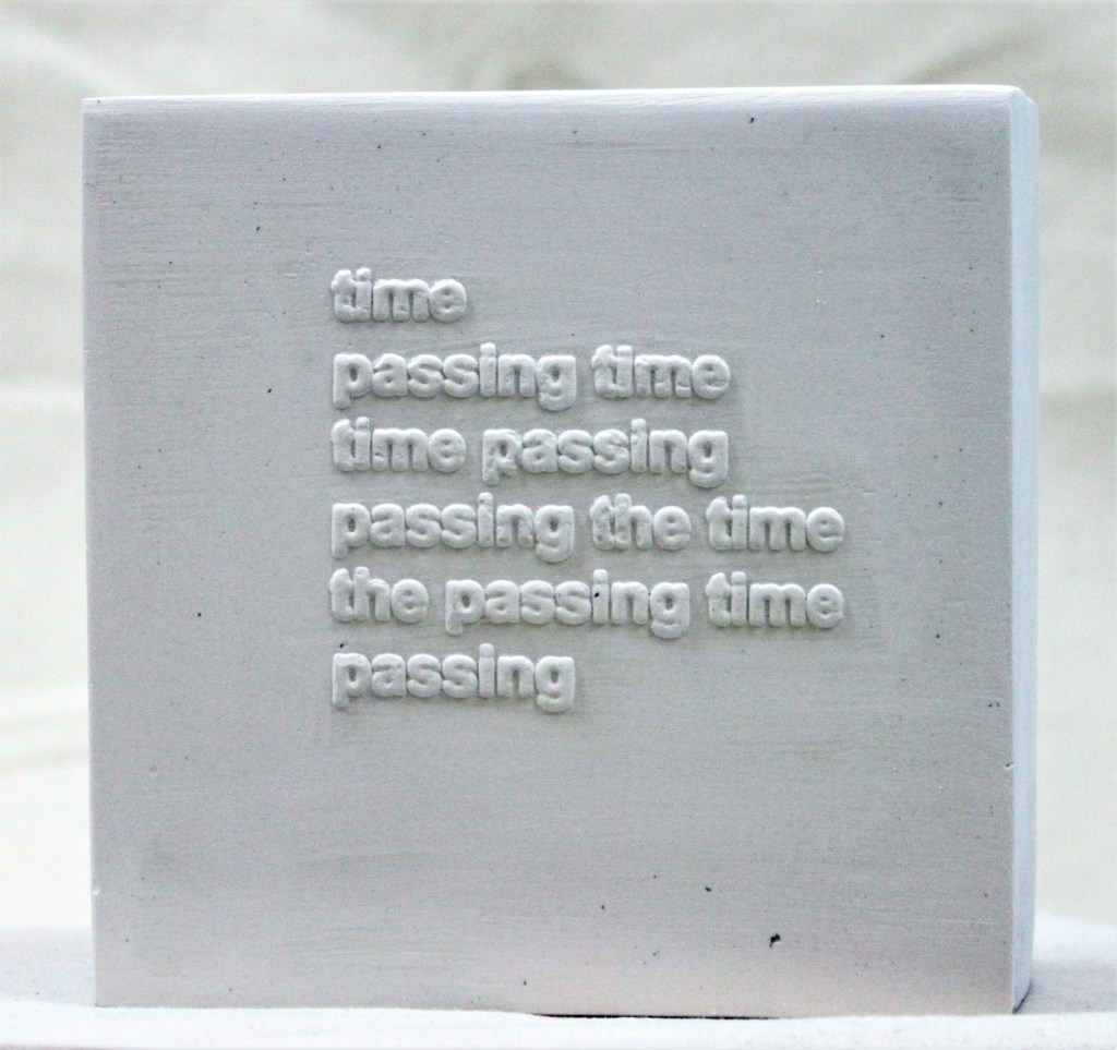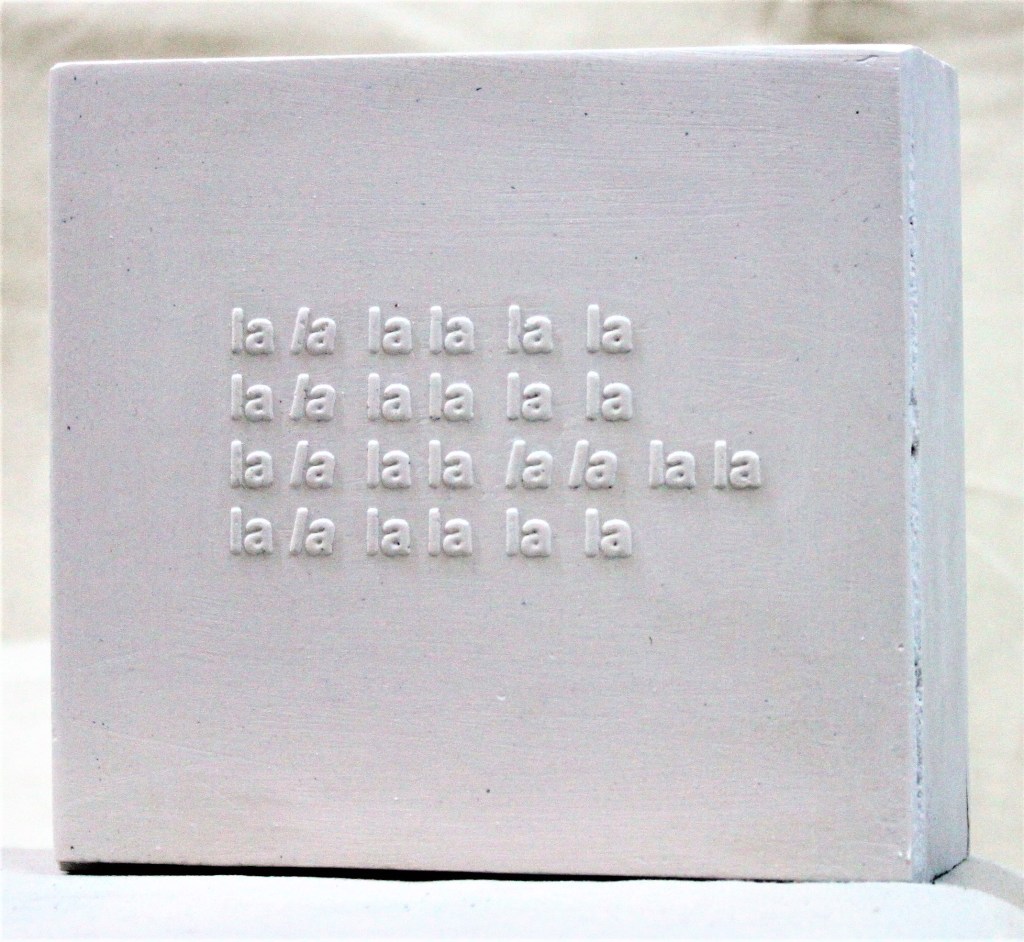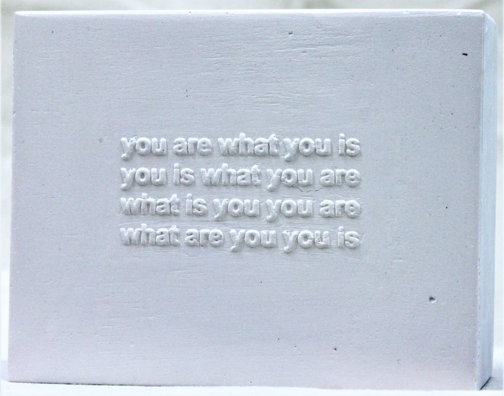 The plaster cast bricks with blind suggestions play with boundaries of sense and nonsense, and refer obliquely to Schwitters’ (Dada) work with language, word and sound. This blurring of meaning and intention seemed to echo a thought on the collaborative edges being explored and enquired of in What Is Done Cannot Be Undone.